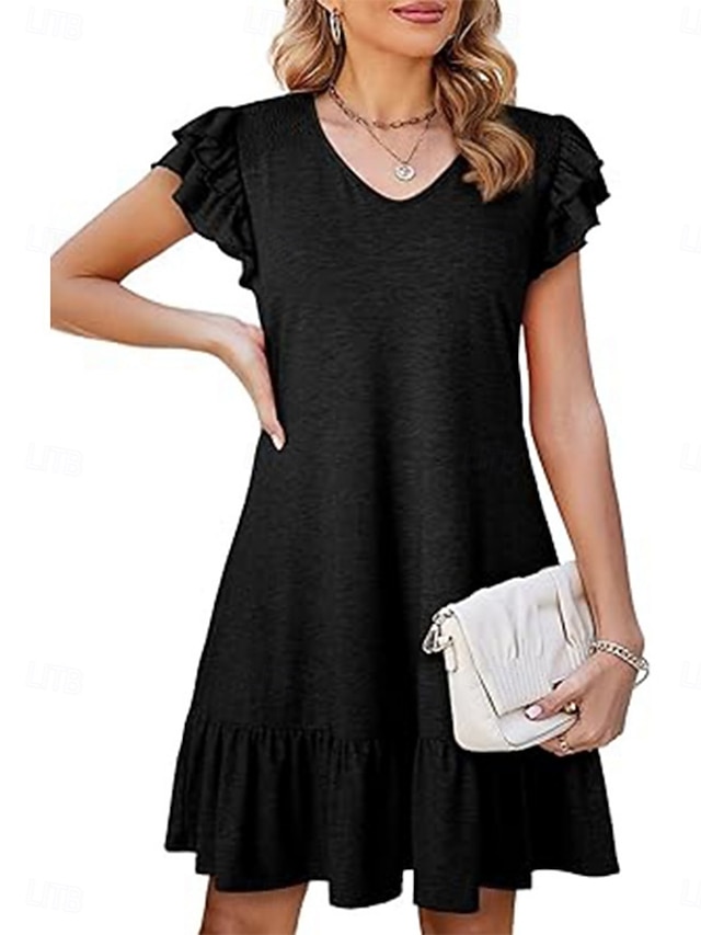 Per donna Mini abito Abito casual Abito linea A Moda Essenziale Informale Da mare Giornaliero Standard Liscio Manica corta A V Nero Rosa Verde Estate Primavera
