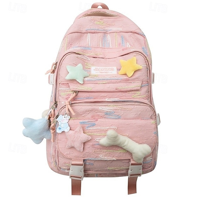 Zaino kawaii per bambine e adolescenti – zaino scolastico rosso con ciondoli a forma di stella e osso in 3D per l'uso quotidiano e i viaggi