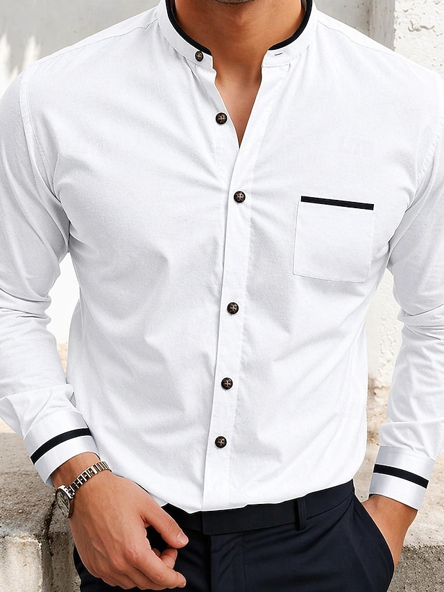 Per uomo Camicia Camicia elegante Camicia Oxford Camicia con colletto alla coreana Camicia con Bottoni Quotidiano Vacanza Bianco Blu marino Grigio Azzurro Manica Lunga Colletto Mao Primavera & Estate