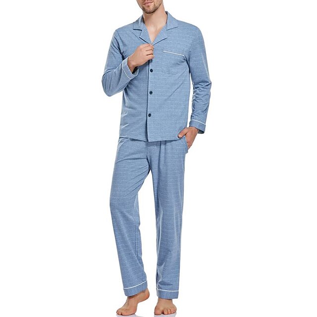 Genere:Per uomo,Modello della biancheria da notte:Abbigliamento da Casa,Pigiami,Set Pigiama,Top e pantaloni del pigiama,Design:Elastico in vita,Coulisse,Fantasia/motivo:Plaid,Tessuto:Cotone,Poliestere,Stile:Elegante,Casual,Comfort,Occasione:Casa,Quotidiano,Quantità:2 Pezzi,Scollatura:Bavero,Elasticità:Micro-elastico,Stagione:Autunno,Inverno,Primavera,LUNGHEZZA MANICHE (cm):S:63;M:64;L:65;XL:66;XXL:67;3XL:68,Spalle (cm):S:44.5;M:46;L:47.5;XL:49;XXL:51;3XL:53,Lunghezza [in basso] (cm):S:104;M:106;L:108;XL:110;XXL:112;3XL:114,Lunghezza [in alto] (cm):S:73;M:75;L:77;XL:79;XXL:81;3XL:83,Tipo di fondale:Pantalone,Funzione:Comodità,Lunghezza della manica:Manica Lunga,Sensazione di emozione:Genere neutro,Comfort,Morbido,Modello top:Camicia,