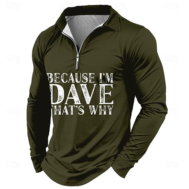 Pullover da uomo a maniche lunghe 'Perché sono Dave ecco perché' Maglietta grafica con zip a un quarto