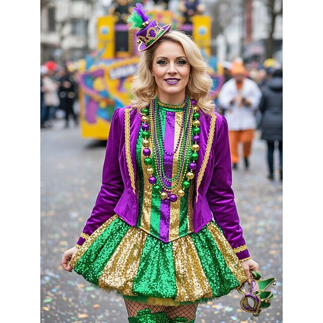 Set di collane di perline di plastica per Mardi Gras - Colorate verde viola e oro perfette per feste di Carnevale e masquerade