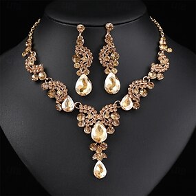 Set di Gioielli 2 Cristallo Lega Orecchini Collana Per donna Elegante Vintage Moda Stile Vintage Classico Parure di gioielli Per Matrimonio Feste Ospite di nozze