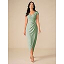 Per donna Lunghezza del tè Abito a Portafoglio Elegante Festa Compleanno Vacanza Matrimonio Ospite di nozze Arricciato Vestibilità regolare Tinta unica Manica Corta Scollo a V Verde salvia