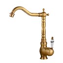 miscelatore per lavabo da bagno vintage montato sul ponte, girevole a 360 gradi girevole monocomando rubinetti per lavabo monoblocco monoforo con tubo dell'acqua calda e fredda sfera in ottone anticato |