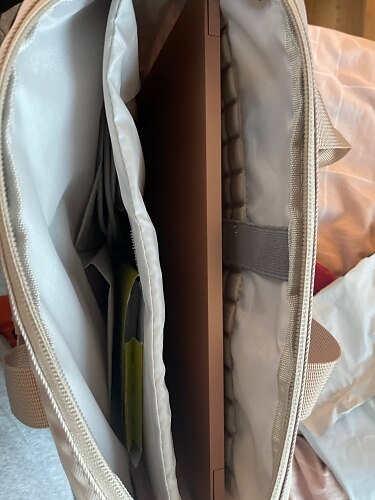Leuke handige laptop tas waar ook nog een noteblok, telefoon en portemonnee in past. Leuke handige laptop tas waar ook nog een noteblok, telefoon en portemonnee in past.