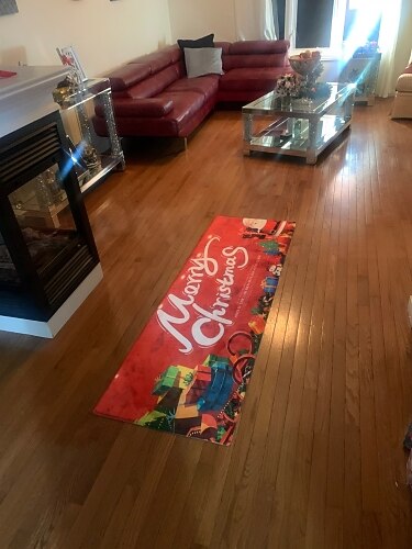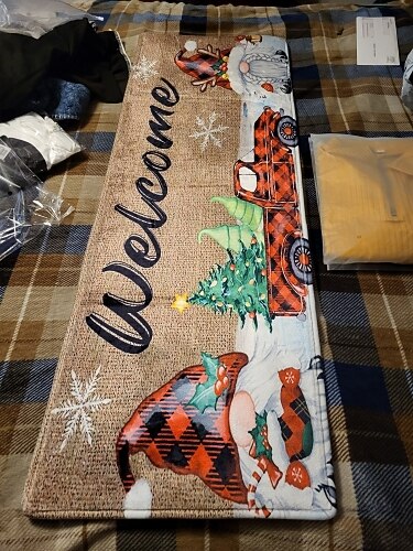 Slow delivery not supplier fault though clearly under pressure to despatch articles for Christmas. Mat brightly coloured and very light weight. Good festive piece. Slow delivery not supplier fault though clearly under pressure to despatch articles for Christmas. Mat brightly coloured and very light weight. Good festive piece.