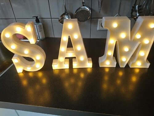 Leuke lampen!!! Je moet een paar weken wachten maar nu blij met de letters. Wel jammer dat aan en uitknopje achterop zit. Nu lastiger aan en uit doen. Maar je kunt niet alles hebben. Leuke lampen!!! Je moet een paar weken wachten maar nu blij met de letters. Wel jammer dat aan en uitknopje achterop zit. Nu lastiger aan en uit doen. Maar je kunt niet alles hebben.