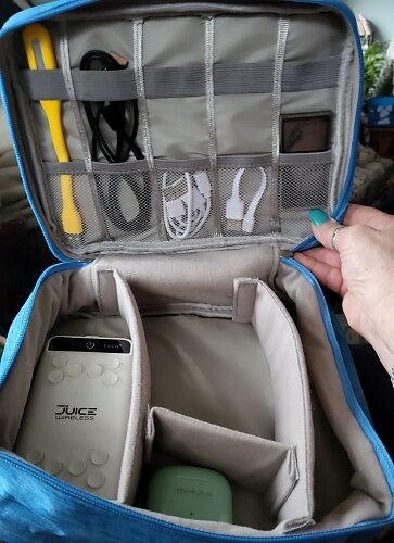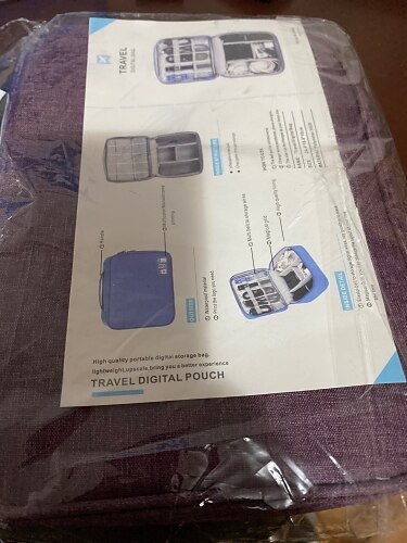 Larger than I expected to hold a lot of cords, charging devices and misc electronics. Secure bands to keep cords in place and soft, totally adjustable spaces for misc items. This actually got me organized! Larger than I expected to hold a lot of cords, charging devices and misc electronics. Secure bands to keep cords in place and soft, totally adjustable spaces for misc items. This actually got me organized!
