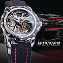 Orologio meccanico da uomo WINNER Orologio di lusso con grande quadrante per affari Automatico autovivente con decorazione luminosa Orologio in pelle |