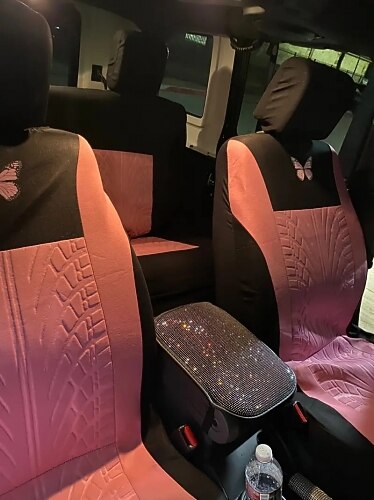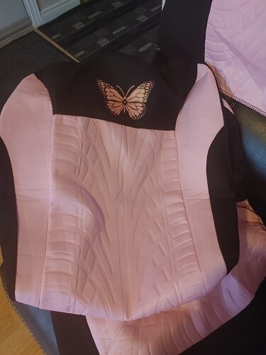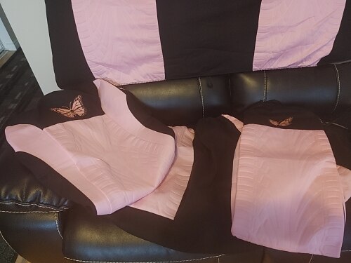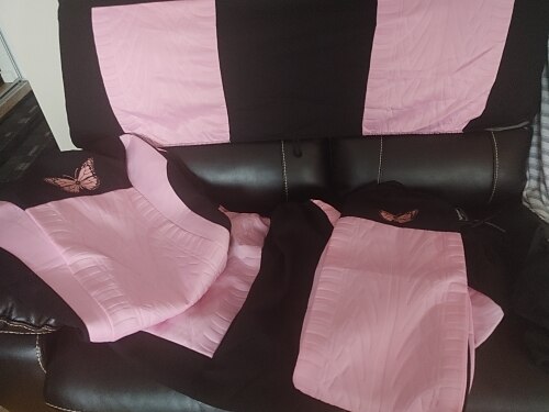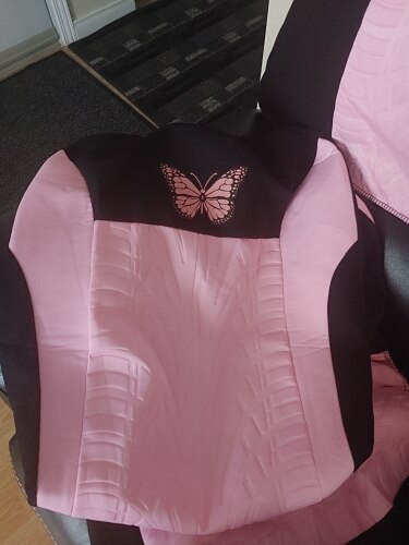 Looks just like the photos cute and comfy i vacuumed and cleaned my car first then I put them on and sprayed perfume so it smelt pretty also :) Looks just like the photos cute and comfy i vacuumed and cleaned my car first then I put them on and sprayed perfume so it smelt pretty also :)