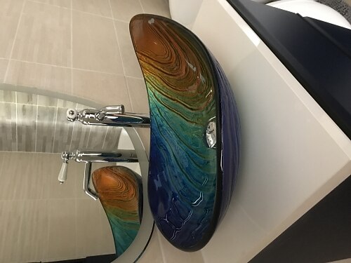 We love our new glass wash basin, size is good and can’t wait to see it in our new bathroom will be a nice stand out feature in there! We love our new glass wash basin, size is good and can’t wait to see it in our new bathroom will be a nice stand out feature in there!