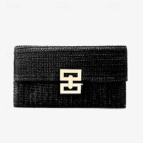 Per donna Tracolla Evening Bag Portafoglio da polso Borsa di paglia Borsa a busta Paglia Feste Ricevimento di matrimonio Spiaggia Fibbia Massima capacità Tinta unica A strisce Nero Albicocca