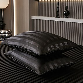 Federe in satin per capelli e pelle 2 pacchi federe in satin set di copripiumini con pattern a strisce senza cerniera con chiusura a busta