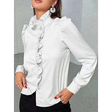 Per donna Camicia Blusa Volant Bottoni Tinta unica Affari Moderno Casual Manica Lunga Dolcevita Top Regolari Lavoro Abbigliamento Formale Bianco Rosso Estate Primavera