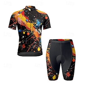 Per uomo Maglia da ciclismo con pantaloncini Manica Corta Mountain Bike MTB Ciclismo su strada Estate Primavera Autunno Nero Giallo Viola Graffiti Bicicletta Cerniera Frontale Traspirante Confortevole