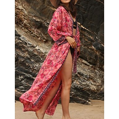 Per donna Vestito maxi Abito casual Abito Boho a maniche lunghe Abito boho Boemia Moda Essenziale Da mare Informale Giornaliero Standard Pop art Manica a 3/4 A V Marrone rossastro Blu Estate