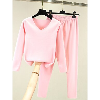 レディースパジャマ 保温セット 純色 ファッション 豪華 カジュアル ホーム デイリー ベッド アクリル 通気性 Vワイヤー 長袖 Tシャツ ティーパンツ 秋冬 ホーム アウトフィット