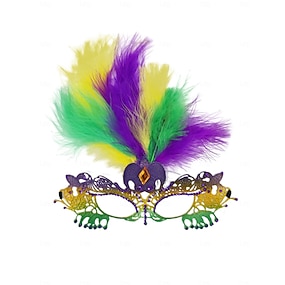女性のフェザーヴェネチアンマスカレードマスク - カラフルなマルディグラスタイルのレーザーカットコスチュームアクセサリー カーニバルパーティー、コスプレ、フェスティバルイベント用