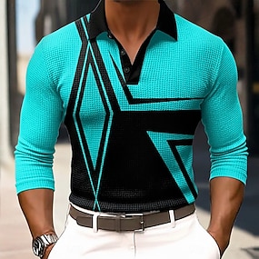 男性用 幾何学模様 抽象的 ポロ 長袖 ポロシャツ ラペル カジュアル ビジネス デイリーウェア 3Dプリント ボタン 春 秋 ブルー ブラック ルビーレッド