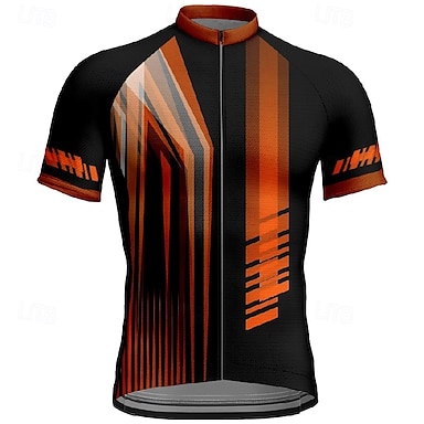 男性用 サイクリングジャージー 幾何学模様 勾配 半袖 バイク トップス 3つのリアポケット付き マウンテンサイクリング ロードバイク 速乾性 反射性ストリップ 後ポケット 吸汗性 スポーツ イエロー ブルー オレンジ 衣類