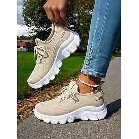 女性用カーキ色の通気性ウォーキングシューズ - 旅行や普段履きに最適な軽量レースアップコンフォートスニーカー