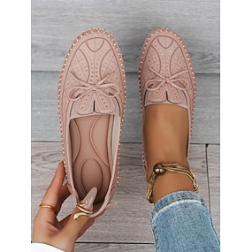 女性用モカシンローファー – リボンのディテールとラインストーンのデザインが施された柔らかい靴で、カジュアルな快適さと春夏の散歩に最適です。