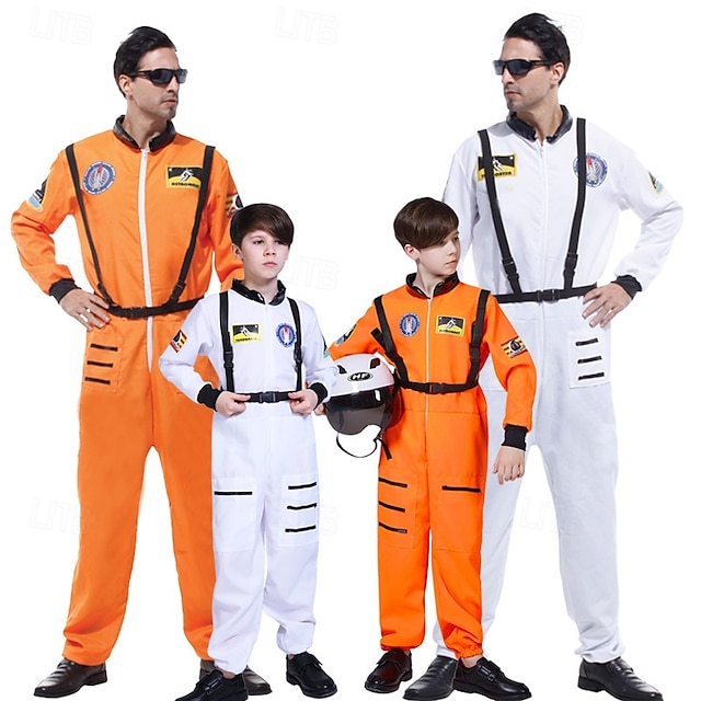 宇宙飛行士 グループ カップル コスチューム コスプレ コスチューム ワンジー コスチューム ジャンプスーツ オレンジ キングスデー ハロウィン カーニバル 大人 キッズ ユニセックス