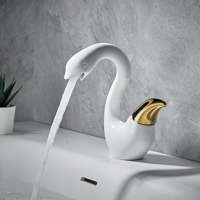 白鳥の形をした蛇口、洗面台用ミキサータップ、洗面台用蛇口、シングルハンドル蛇口、シングルホール、バスルーム用洗面台用蛇口、ミキサータップ、バスルーム用水栓、キッチン用
