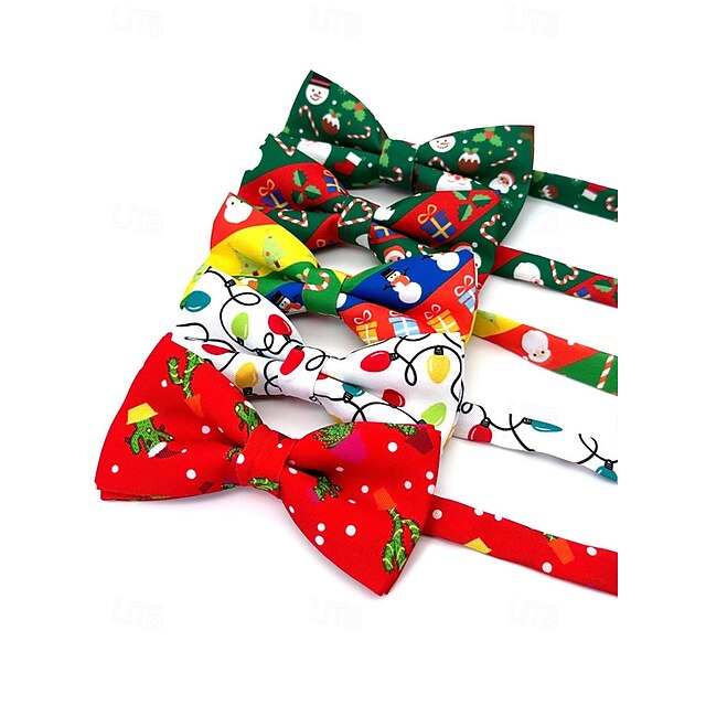 2026年 メンズクリスマス蝶ネクタイ - サンタ、ツリー、雪のお祝いのデザインが施されたポリエステル生地。ホリデーパーティーやお祝いに最適です。  コレクション – $8.99 –P5