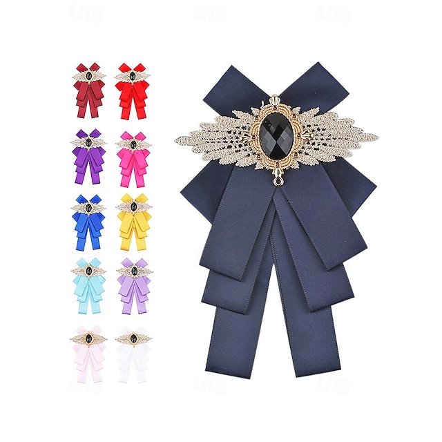 ブローチ付きの男性用ポリエステル蝶ネクタイ。複数の色があり、結婚式やフォーマルなイベントに最適なエレガントなスタイルです。
