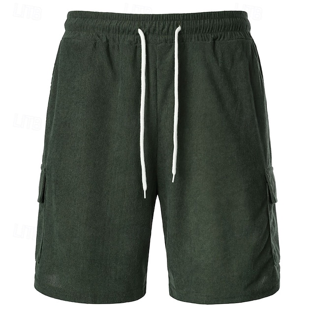 2026年 男性用 カーゴショーツ カジュアルショーツ コーデュロイショーツ ドローストリング 弾性ウエスト マルチポケット 平織り 履き心地よい ソフト 全長 アウトドア 日常 祝日 スポーツ ファッション ブラック アーミーグリーン  コレクション – $21.99 –P3