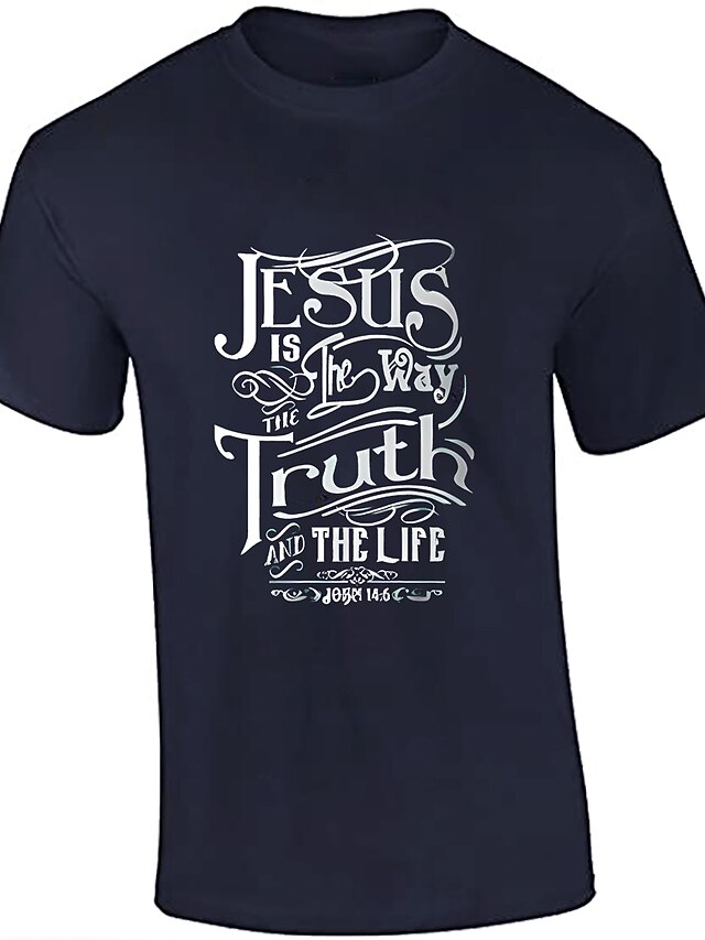 男のグラフィックTシャツ - 「イエスは道であり、真理であり、命である」ヨハネ14:6クリスチャン信仰宗教の聖句Tシャツ