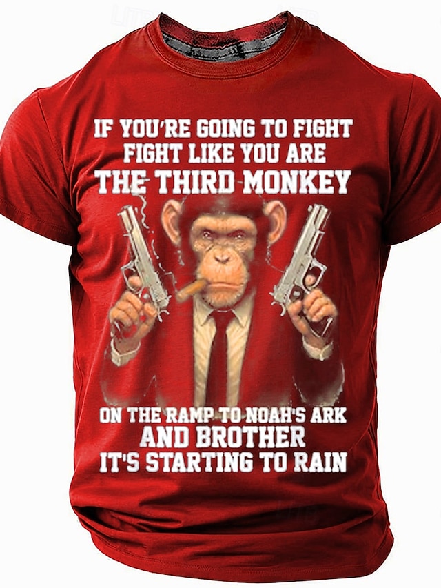 メンズショートスリーブグラフィックTシャツ 'ノアの方舟の三番目の猿のように戦え' ユーモラスライフスタイル