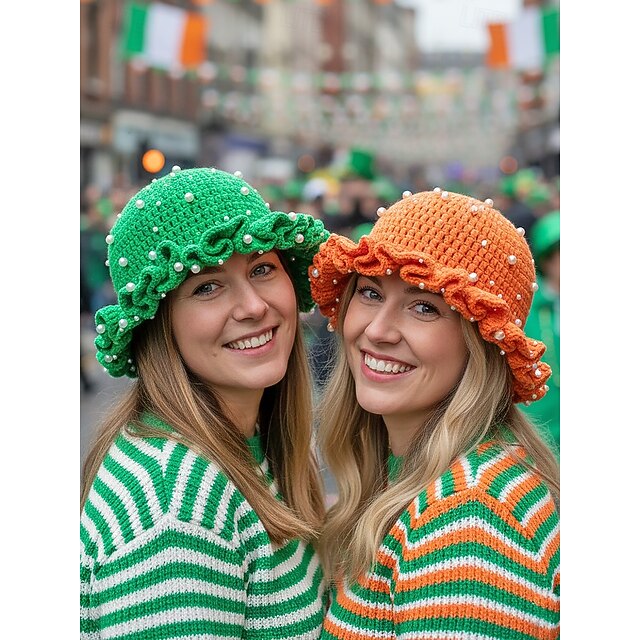 2026年 女性用のニットクローバーパール装飾帽子。複数の色があり、聖パトリックの日、カーニバル、普段着に最適です。  コレクション – $18.99 –P8