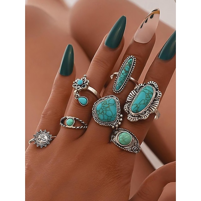 2026年 女性用ターコイズリングセット - 女性の休日、ビーチでの休暇、普段使いに最適なヴィンテージボヘミアン合金ジュエリーのマルチピースセット  コレクション – $11.99 –P7