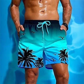 男性用 スイムウェア スイムショーツ スイムトランク ショーツ プリント グラフィック 履き心地よい 高通気性 祝日 お出かけ ハワイアン ボヘミアン ブラック ブルー