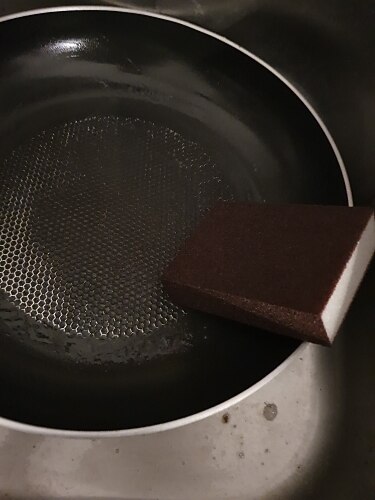Sehr guter Schwamm um die Pfanne zu reinigen, nachdem man darin Eier gebraten hat. Sehr guter Schwamm um die Pfanne zu reinigen, nachdem man darin Eier gebraten hat.