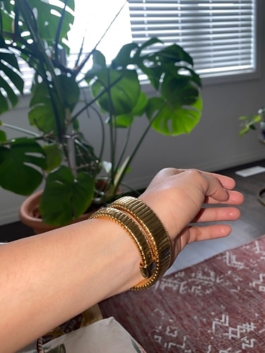 really really really nice, not cheap looking, it wraps around my sweethearts narrow wrist in a very lovely manner, and the mix of gold and silver is fabulous. really really really nice, not cheap looking, it wraps around my sweethearts narrow wrist in a very lovely manner, and the mix of gold and silver is fabulous.