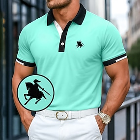 Men's Geometic Polo Shirts Short Sleeve Polo Shirts Collared Shirts Casual Athleisure Buttons Summer Spring Blue Purple Green