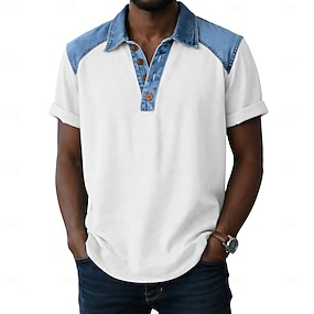 Men's Polo Shirts Denim Shirt Casual Work Lapel Short Sleeve Basic Modern Color Block Patchwork Buttons Spring & Summer Blue Black White Navy Blue Brown Green Polo Shirts