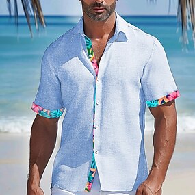 Men's Shirt Summer Shirt Casual Shirt Beach Shirt Button Up Shirt Pink Blue Gray Short Sleeve Print Lapel Vacation Hawaiian Clothing Apparel Fashion Casual Comfortable