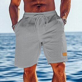 Men's Shorts Linen Shorts Summer Shorts Beach Shorts Drawstring Elastic Waist Straight Leg Plain Comfort Breathable Knee Length Outdoor Daily Holiday Vacation Fashion Dark Khaki Black