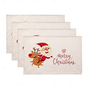 4 stuks/set vrolijke kerst placemats – katoen en linnen seizoensgebonden winter kerst tafelmatten voor buiten binnen huis feest keuken eetkamer decoratie, 30x45cm (12x18 inch)