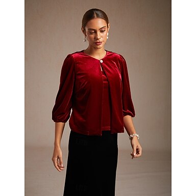 Kerstmis Dames Fluweel Knoop omhoog Geklede topjes Elegant Feest 3/4 mouw Pofmouw Strakke ronde hals Normale tops Feestavondkleding Feestdagen Feestoutfits Wijn Lente Herfst Winter