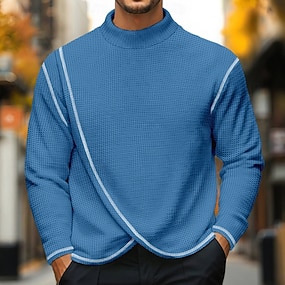 Voor heren Wafel Shirt Coltrui T-shirt Shirt met lange mouwen Lange mouw Coltrui Opstaande boord Lente & Herfst Effen Kleur Modieus Ontwerper Basic wrap Vakantie Straat Uitgaan Wit Blauw Marineblauw