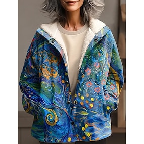 Viking boho dames winterjas warm lichtgewicht rits print fleece gevoerd elegant vintage mode geometrisch thuiswerk casual rits normaal capuchon losse pasvorm lange mouw bovenkleding