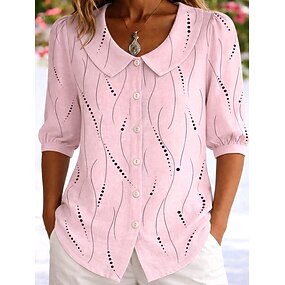 Dames Overhemd Geometrisch Elegant Bohemen Vakantie Revers Dagelijks Strand Feestdagen blauw Wit Blozend Roze Licht Paars Grijs Zomer Lente