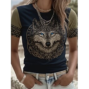 Dames T-shirt Afdrukken Grafisch dier Vintage Stijlvol Klassiek Korte mouw Strakke ronde hals Ronde hals Normale tops Dagelijks Weekend Wit Khaki Beige Zomer Lente Herfst Winter