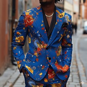 Voor heren Bloemenprint Blazerjack Jas Modieus Comfortabel Ademend Artistiek Casual Dagelijks Formeel Feestavondkleding 3D-afdrukken Knop Meerdere zakken Lente Herfst winter Inkeping Lange mouw blauw